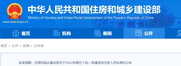 ?住房和城鄉(xiāng)建設部關于2022年第五十批一級建造師注冊人員名單的公告