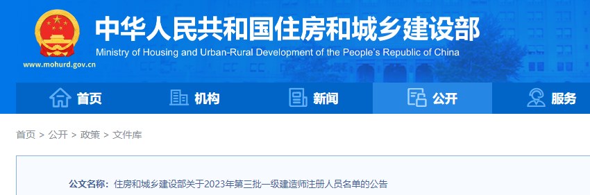 住建部關(guān)于2023年第三批一級建造師注冊人員名單的公告