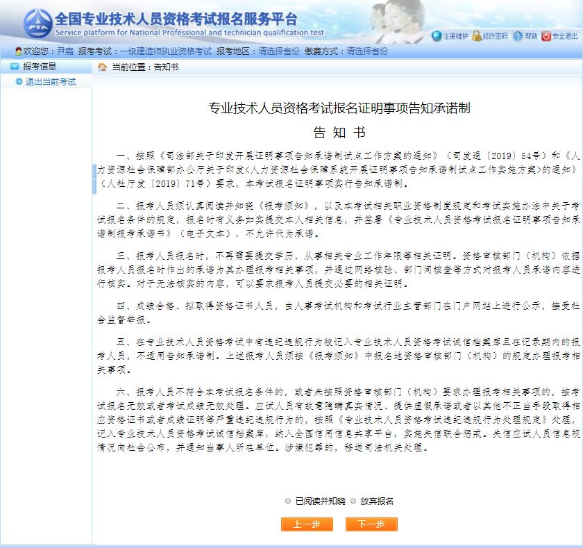 一、報(bào)考人員須認(rèn)真閱讀并知曉《專業(yè)技術(shù)人員資格考試報(bào)名證明事項(xiàng)告知承諾制告知書(shū)》。