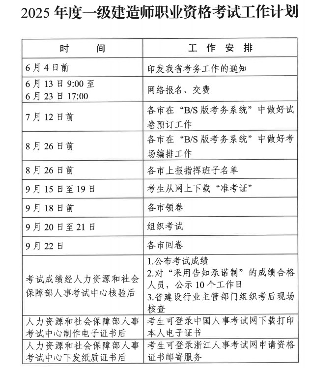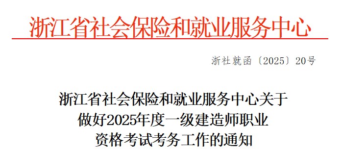 浙江關(guān)于2025年度一級(jí)建造師職業(yè)資格考試考務(wù)工作的通知