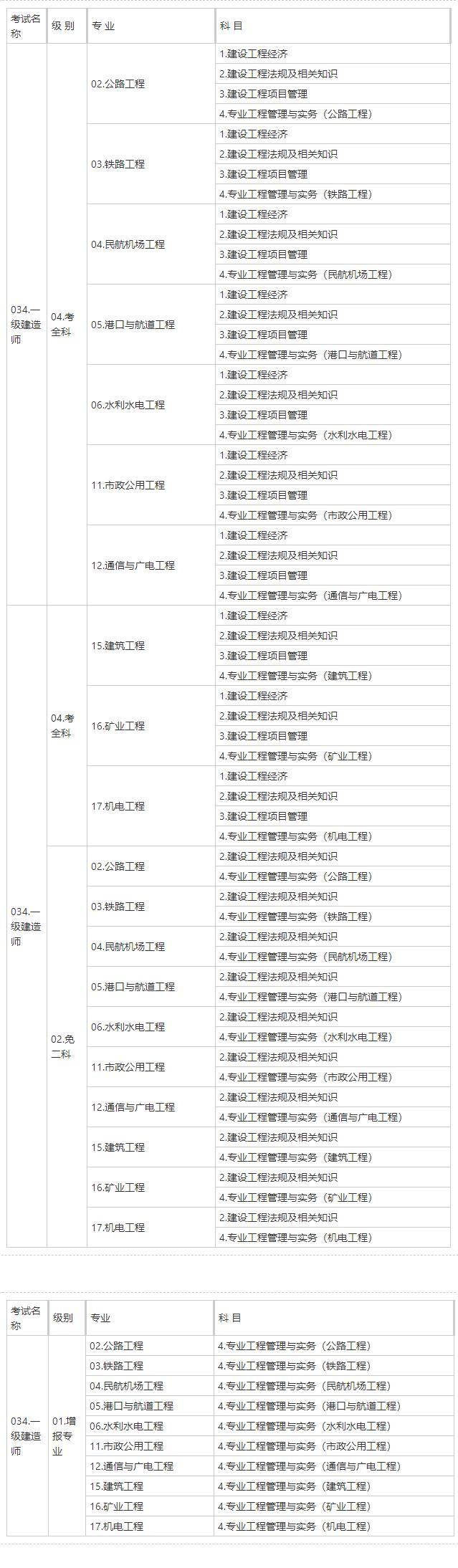 參加4個(gè)科目考試(級(jí)別為考全科)的人員須在連續(xù)2個(gè)考試年度內(nèi)通過全部應(yīng)試科目,參加2個(gè)科目考試(級(jí)別為免二科)的人員須在1個(gè)考試年度內(nèi)通過應(yīng)試科目,方可獲得資格證書;參加1個(gè)科目考試(級(jí)別為增報(bào)專業(yè))的人員須取得一級(jí)建造師資格證書后方可報(bào)名,通過應(yīng)試科目后方可獲得成績(jī)合格證明。