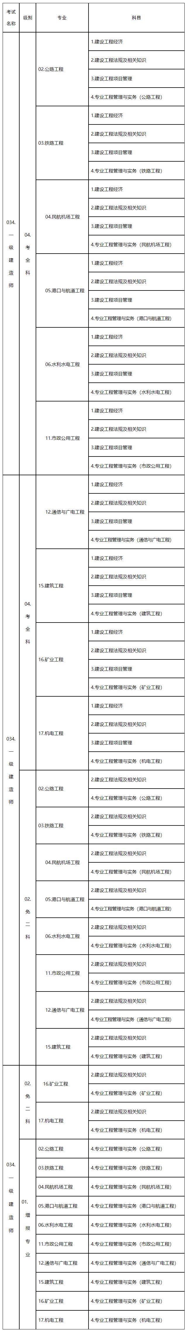 附件:2025年度一級(jí)建造師職業(yè)資格考試名稱、級(jí)別、專業(yè)及科目信息