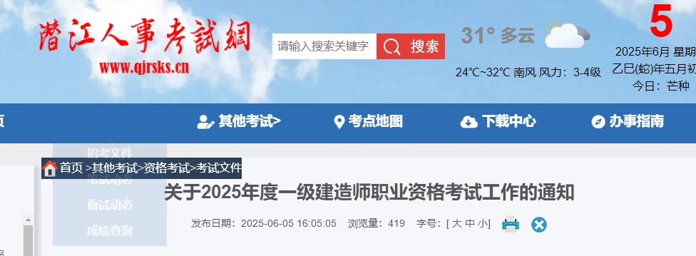 潛江人事考試網(wǎng)發(fā)布關(guān)于2025年度一級建造師職業(yè)資格考試工作的通知,具體信息如下: