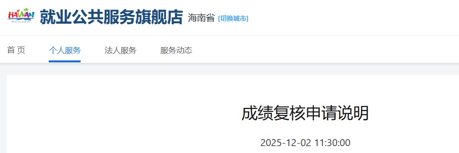 海南省就業(yè)公共服務(wù)旗艦店發(fā)布成績(jī)復(fù)核申請(qǐng)說明,具體信息如下: