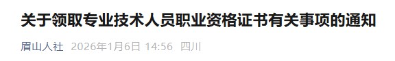 眉山人社公眾號(hào)發(fā)布關(guān)于領(lǐng)取專業(yè)技術(shù)人員職業(yè)資格證書有關(guān)事項(xiàng)的通知,具體信息如下: