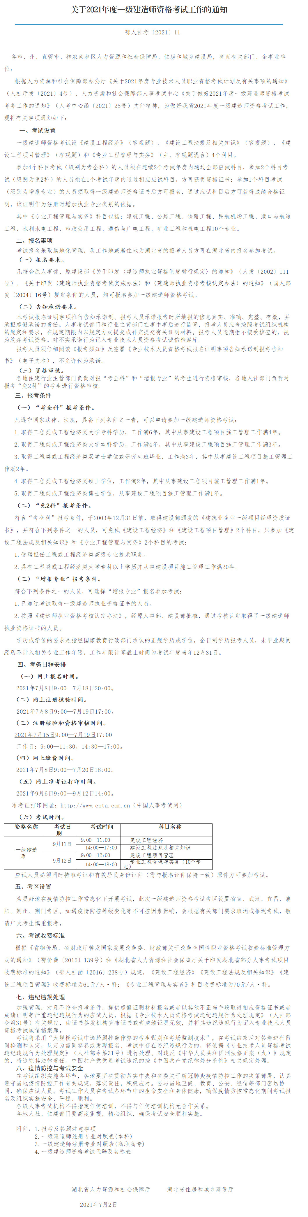 湖北人事考試網(wǎng)2021年一級(jí)建造師資格考試工作的通知