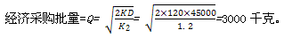某施工企業(yè)所需甲種材料,年度采購總量為45000千克,材料單價為500元,一次訂貨變動成本為120元,每千克材料的年平均儲備成本為1.20元,該批材料的經濟采購批量是( )。