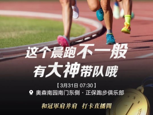 冠軍領(lǐng)跑,火力全開!3月31日早7:30,正保跑步俱樂部簽約運動員將帶領(lǐng)大家全力奔跑,感受來自冠軍的速度!