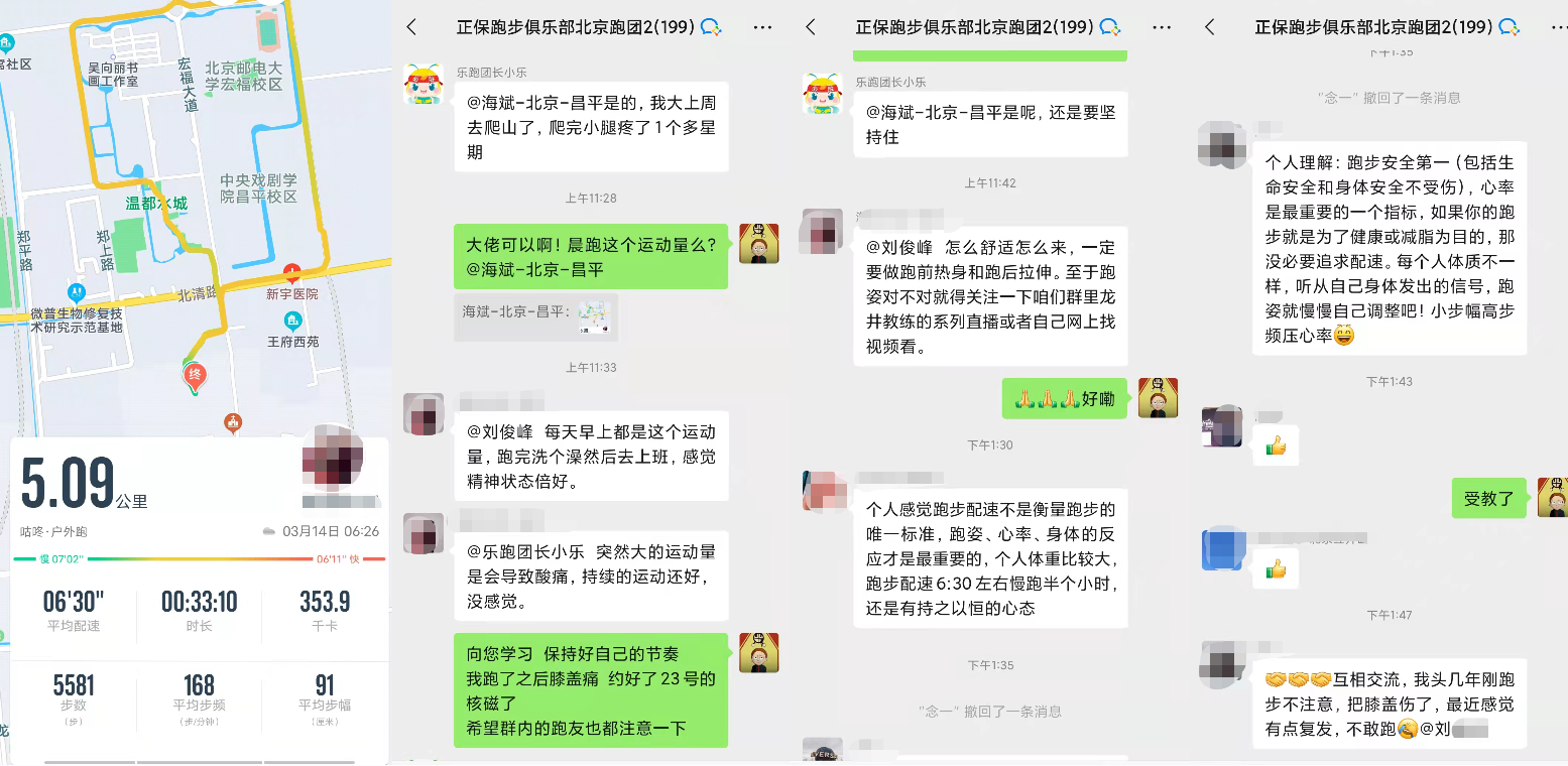 正保跑團(tuán)群內(nèi)積極分享跑步心得