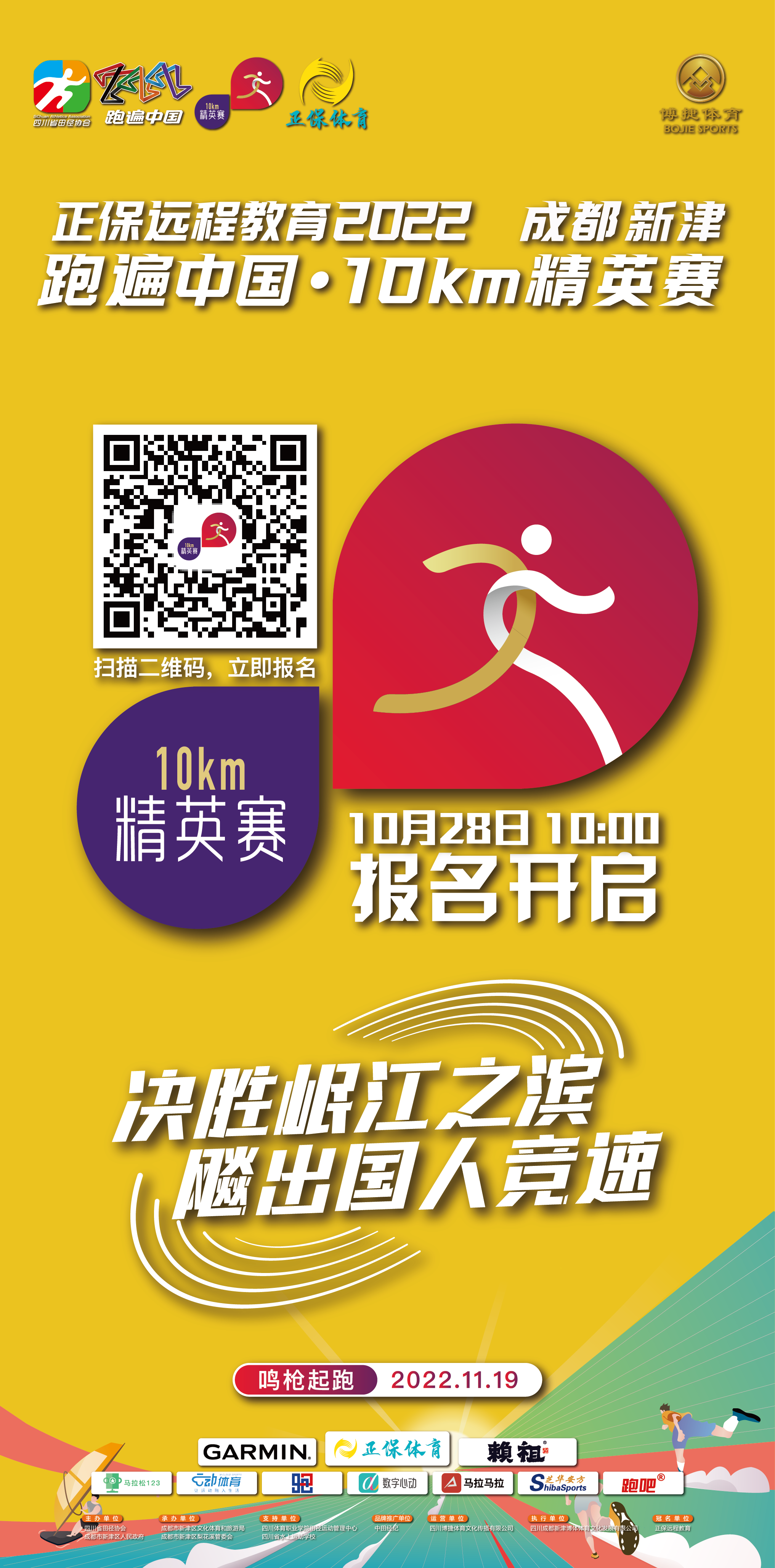 11月19日上午9:00點(diǎn),“正保遠(yuǎn)程教育 2022成都新津 跑遍中國(guó)·10km精英賽” 即將鳴槍起跑。