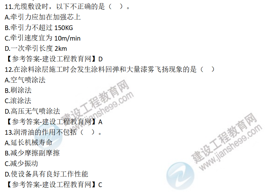 2022年一級(jí)建造師機(jī)電工程試題及答案解析11-20題,建設(shè)工程教育網(wǎng)考后將會(huì)根據(jù)學(xué)員反饋,及時(shí)匯總2022年一級(jí)建造師機(jī)電工程試題及答案解析分享給大家,并且會(huì)及時(shí)做出一級(jí)建造師答案解析,希望能為廣大一建考生朋友帶來幫助。