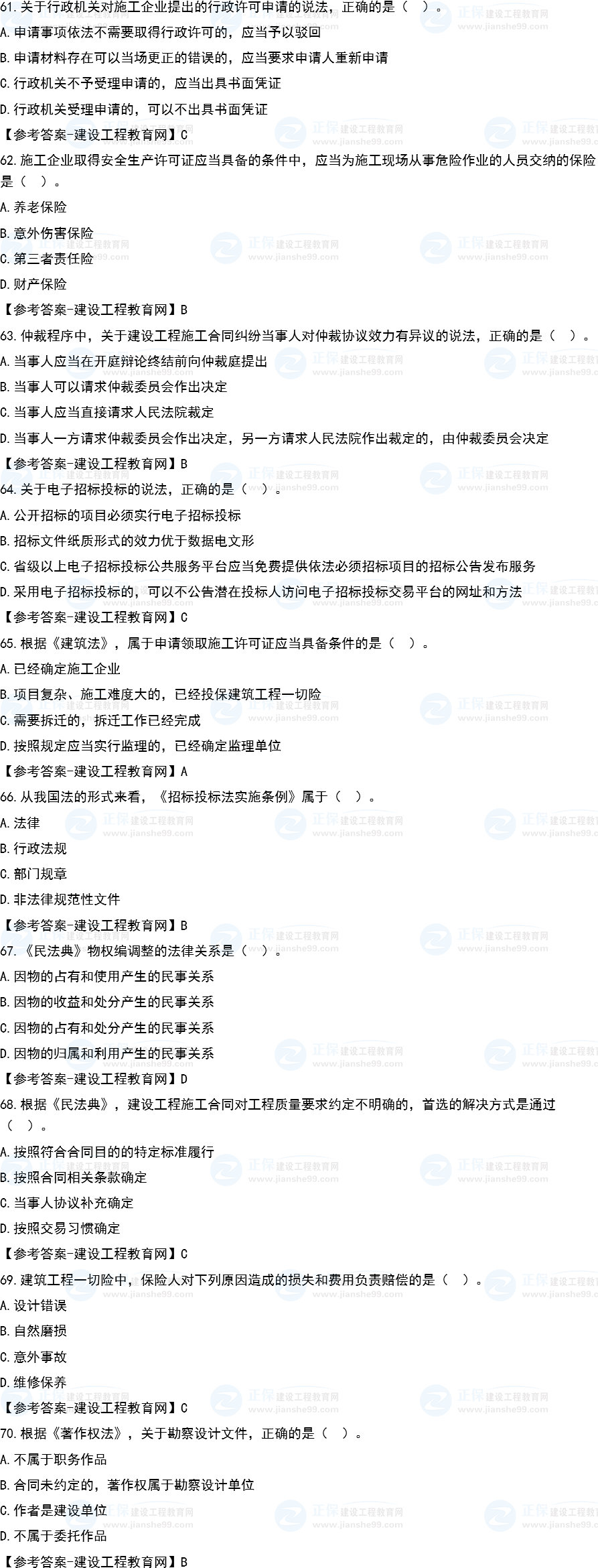 2022年一級(jí)建造師考試(補(bǔ)考)工程法規(guī)試題及答案解析61-70題