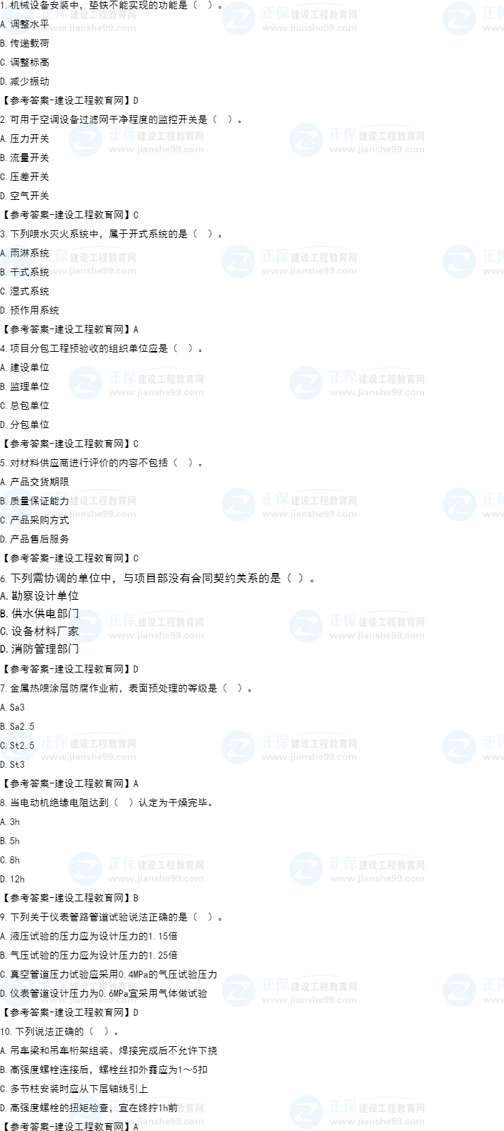 2022年一級(jí)建造師考試(補(bǔ)考)機(jī)電工程試題及答案解析1-10題