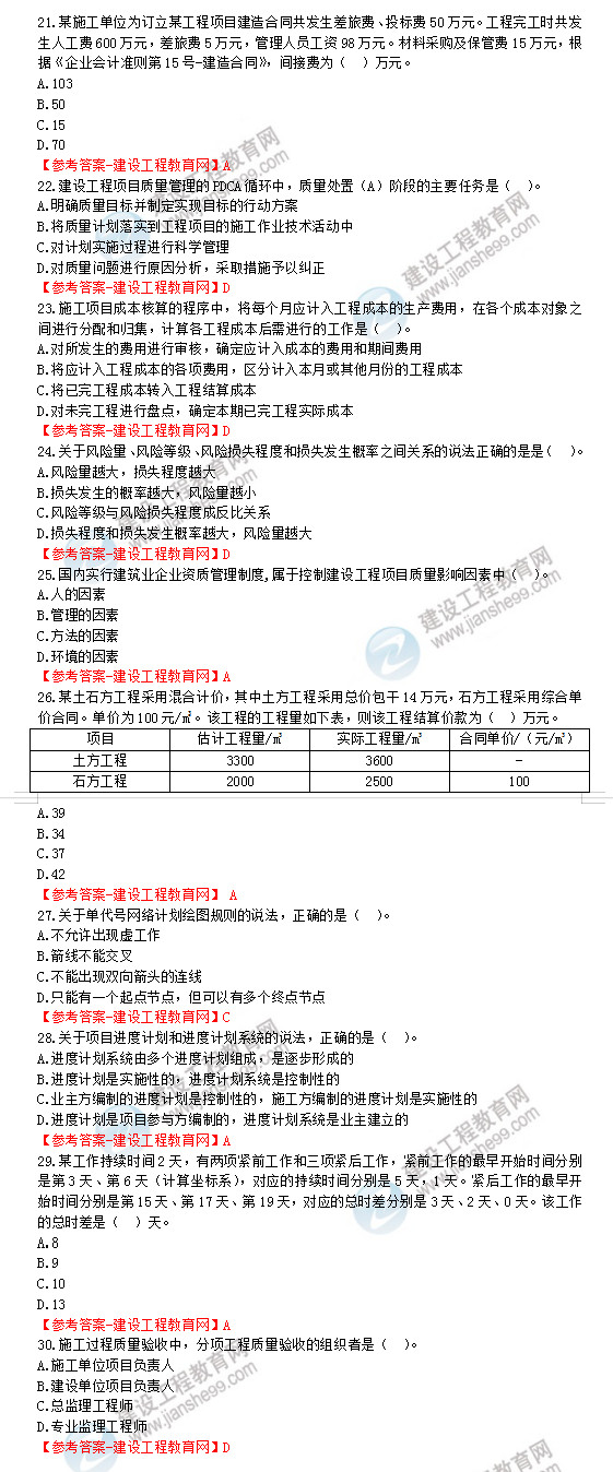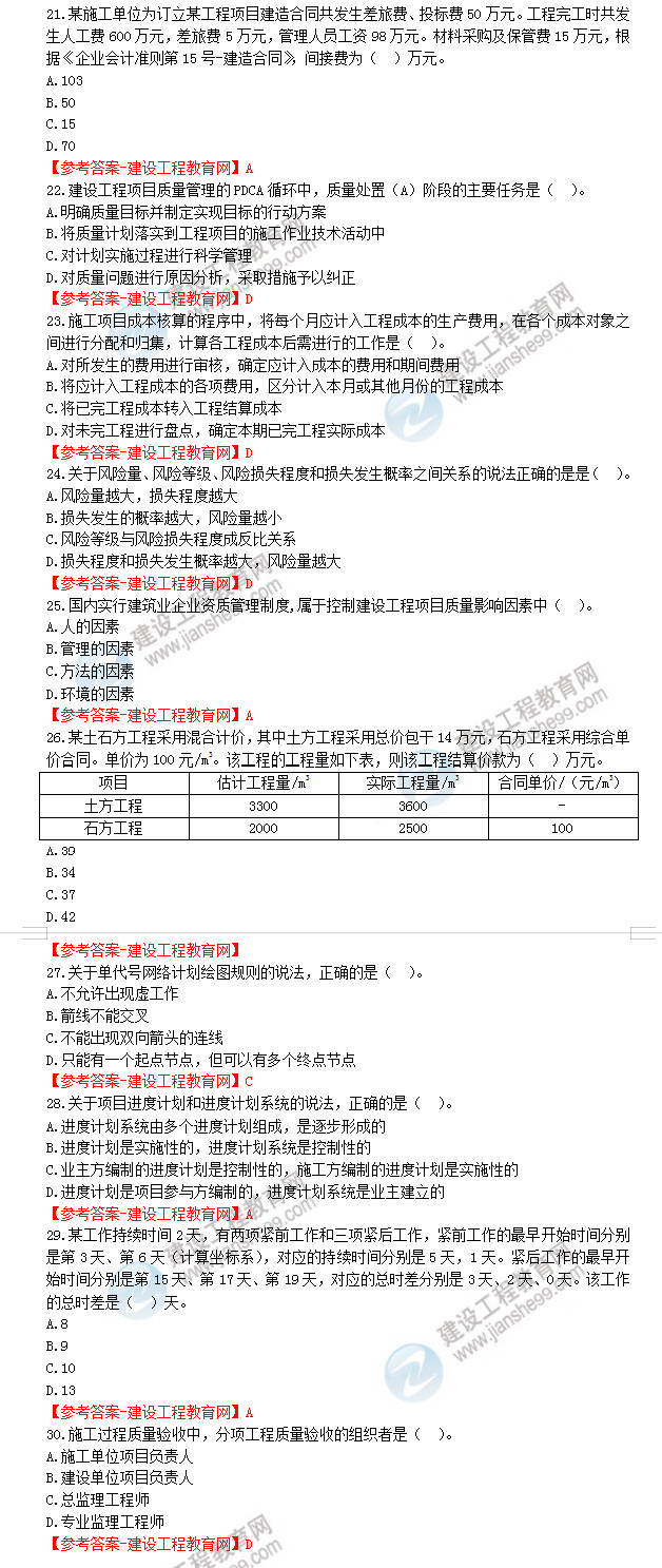 2019年一級(jí)建造師《建設(shè)工程項(xiàng)目管理》試題答案及解析21-30