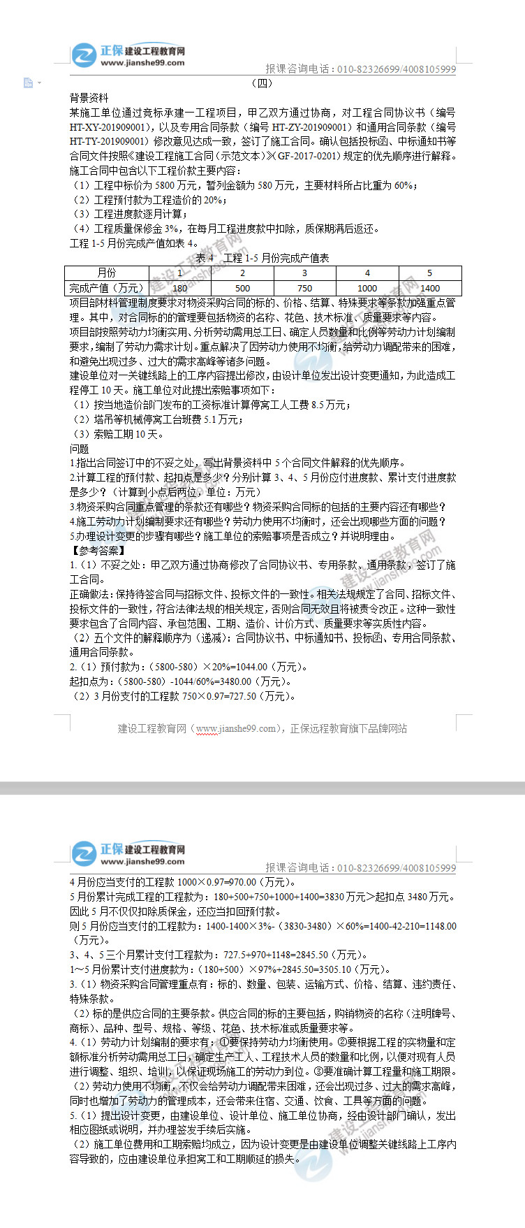2019年一級建造師《建筑實務》試題及答案解析案例四