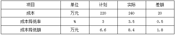 某項目施工成本數(shù)據(jù)如下表,根據(jù)差額計算法,成本降低率提高對成本降低額的影響程度為( )萬元。