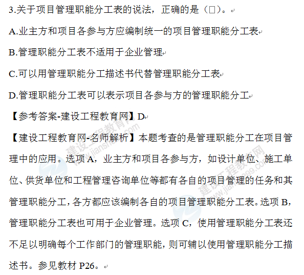 2021年一級(jí)建造師已經(jīng)陸續(xù)開始報(bào)名,考生們也在緊張的備考中。一級(jí)建造師備考除了吃透教材外,做一做歷年試題也是備考路上必不可少的一步,建設(shè)工程教育網(wǎng)為大家整理了2020年一級(jí)建造師《建設(shè)工程項(xiàng)目管理》的一些試題,希望對(duì)大家有所幫助!