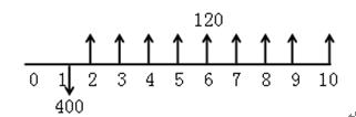 【答案解析】本題考查的是財務(wù)內(nèi)部收益率的判斷和優(yōu)劣。根據(jù)財務(wù)凈現(xiàn)值的含義及其計算公式(1025),該方案的財務(wù)凈現(xiàn)值(FNPV)=﹝-400+120×(P/A,8%,9)﹞×(1+8%) -1=323.72(萬元)﹥0。