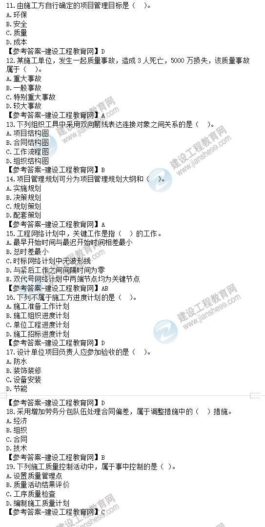 2022年一級(jí)建造師項(xiàng)目管理試題及答案11-20題,建設(shè)工程教育網(wǎng)考后將會(huì)根據(jù)學(xué)員反饋,及時(shí)匯總2022年一級(jí)建造師項(xiàng)目管理試題及答案分享給大家,并且會(huì)及時(shí)做出答案解析,希望能為廣大一建考生朋友帶來(lái)幫助。