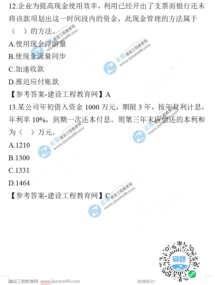 2021年一級(jí)建造師工程經(jīng)濟(jì)試題及答案11-20題