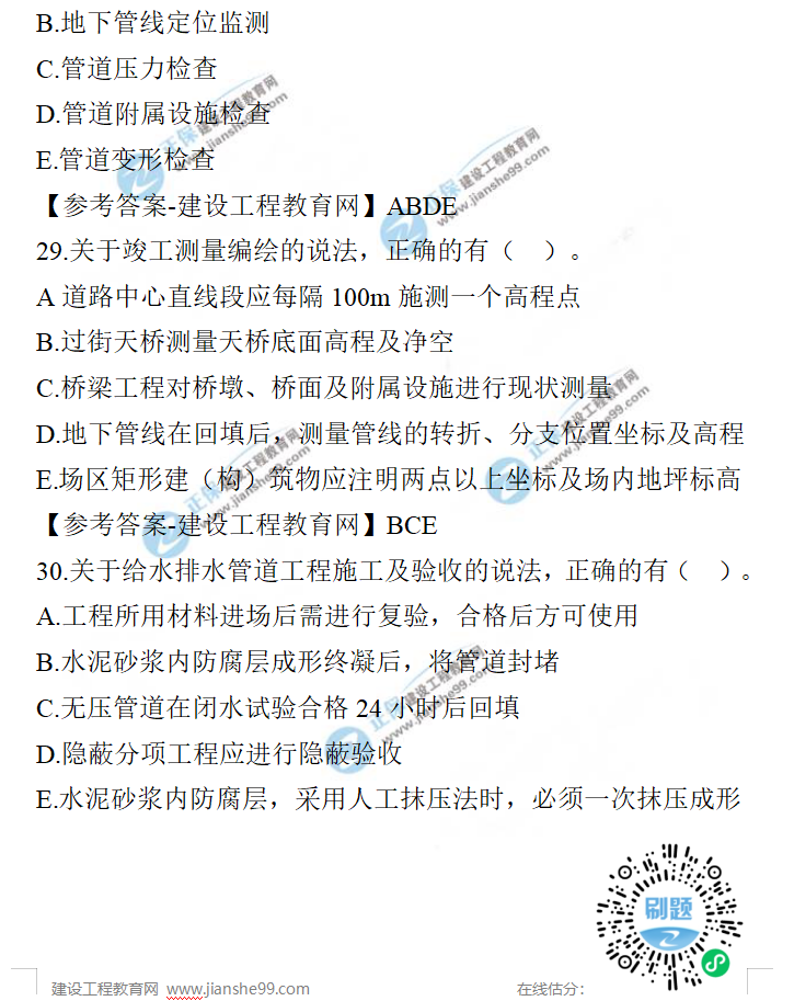 2021年一級建造師市政工程試題及答案解析21-30題,建設(shè)工程教育網(wǎng)考后將會根據(jù)學員反饋,及時匯總2021年一級建造師市政工程試題及答案解析分享給大家,并且會及時做出一級建造師答案解析,希望能為廣大一建考生朋友帶來幫助。