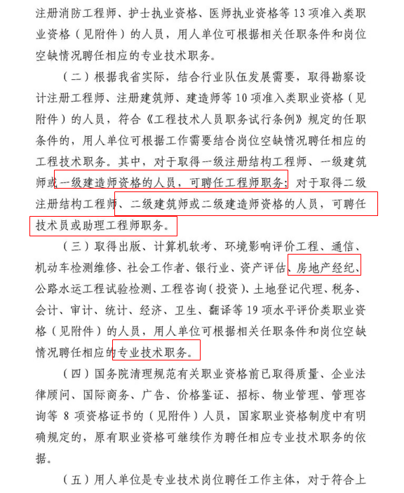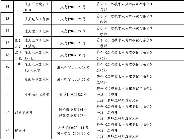 二、對(duì)于取得一級(jí)注冊(cè)結(jié)構(gòu)工程師、一級(jí)建筑師或一級(jí)建造師資格的人員,可聘任工程師職務(wù);對(duì)于取得二級(jí)注冊(cè)結(jié)構(gòu)工程師、二級(jí)建筑師或二級(jí)建造師資格的人員,可聘任技術(shù)員過(guò)著助力工程師職務(wù)。