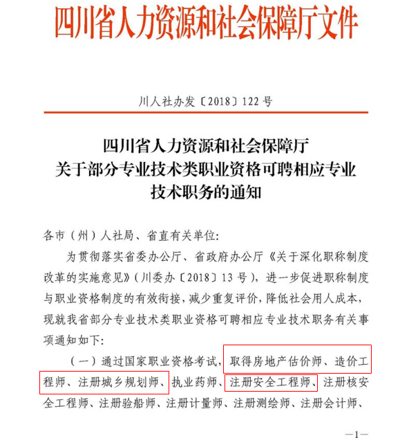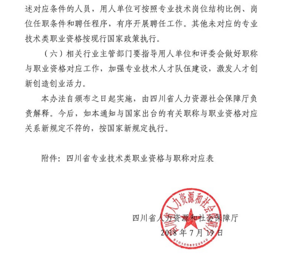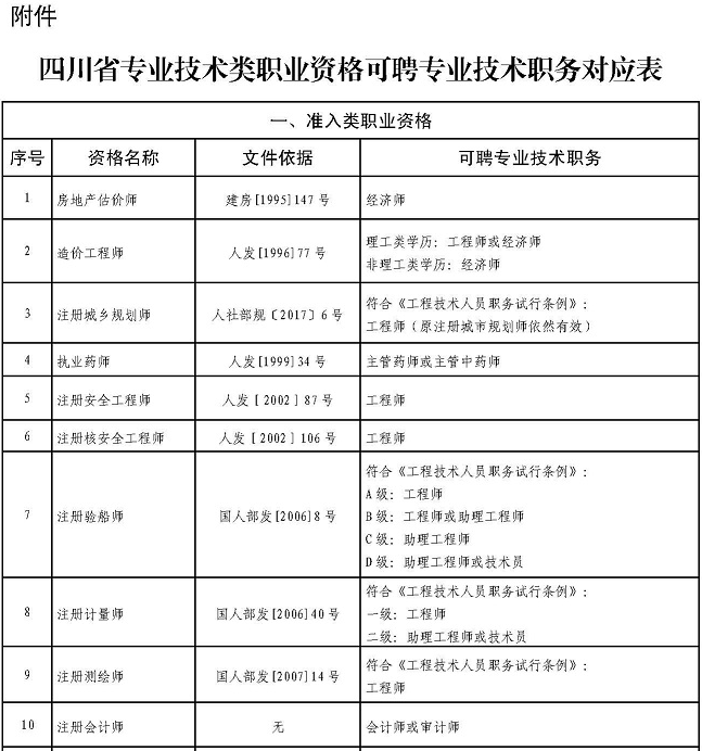 四川省關(guān)于部分專(zhuān)業(yè)技術(shù)類(lèi)職業(yè)資格可聘相應(yīng)專(zhuān)業(yè)技術(shù)職務(wù)的通知