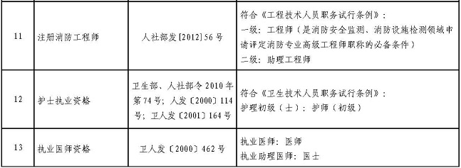 一、通過(guò)國(guó)家職業(yè)資格考試,取得房地產(chǎn)估價(jià)師、造價(jià)工程師、注冊(cè)城鄉(xiāng)規(guī)劃師、執(zhí)業(yè)藥師、注冊(cè)安全工程師、注冊(cè)核安全工程師、注冊(cè)驗(yàn)船師、注冊(cè)計(jì)量師、注冊(cè)會(huì)計(jì)師、注冊(cè)消防工程師、護(hù)士執(zhí)業(yè)資格、醫(yī)師執(zhí)業(yè)資格等13項(xiàng)準(zhǔn)入類(lèi)職業(yè)資格的人員,用人單位可根據(jù)相關(guān)任職條件和崗位空缺情況聘任相應(yīng)的專(zhuān)業(yè)技術(shù)職務(wù)。