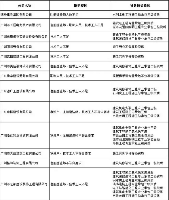 自2019年2月1日——15日,廣州市住建委已連撤13家建企的28項資質。其中,一家建企因“注冊建造師、技術工人不足”,七項建筑業(yè)資質被一次性撤回!