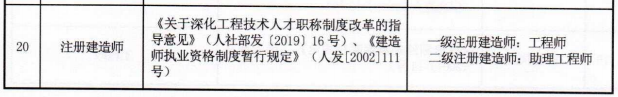 列入該目錄的注冊(cè)消防工程師、注冊(cè)核安全工程師、房地產(chǎn)估價(jià)師、造價(jià)工程師、注冊(cè)城鄉(xiāng)規(guī)劃師、注冊(cè)驗(yàn)船師、注冊(cè)計(jì)量師、注冊(cè)安全工程師、執(zhí)業(yè)藥師、注冊(cè)測(cè)繪師、工程咨詢(投資)專業(yè)技術(shù)人員職業(yè)資格、計(jì)算機(jī)技術(shù)與軟件專業(yè)技術(shù)資格、資產(chǎn)評(píng)估師、土地登記代理專業(yè)人員職業(yè)資格、環(huán)境影響評(píng)價(jià)工程師、房地產(chǎn)經(jīng)紀(jì)專業(yè)人員職業(yè)資格、機(jī)動(dòng)車檢測(cè)維修專業(yè)技術(shù)人員職業(yè)資格、公路水運(yùn)工程試驗(yàn)檢測(cè)專業(yè)技術(shù)人員職業(yè)資格、銀行業(yè)專業(yè)人員職業(yè)資格、注冊(cè)建造師、勘察設(shè)計(jì)注冊(cè)工程師、水利工程質(zhì)量檢測(cè)員資格、民用核安全設(shè)備無損檢驗(yàn)人員資格、民用核設(shè)施操縱人員資格、注冊(cè)建筑師、監(jiān)理工程師等26項(xiàng)職業(yè)資格,直接對(duì)應(yīng)相應(yīng)系列和層級(jí)的職稱。
