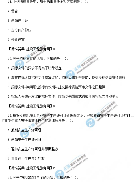 2018年一級建造師《法規(guī)》試題答案及解析(11-20)
