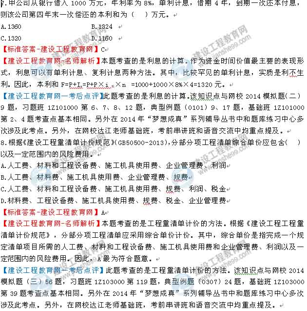 2014一級建造師《工程經(jīng)濟(jì)》考生試題及答案第1-7題,更多試題及答案在網(wǎng)頁下方