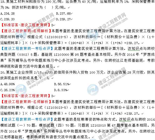 2014一級建造師工程經(jīng)濟答案及解析由老師整理而成,部分網(wǎng)站未經(jīng)許可擅自轉載、抄襲,造成內(nèi)容有所缺失或錯誤,請大家以建設工程教育網(wǎng)發(fā)布為準!