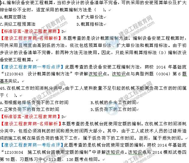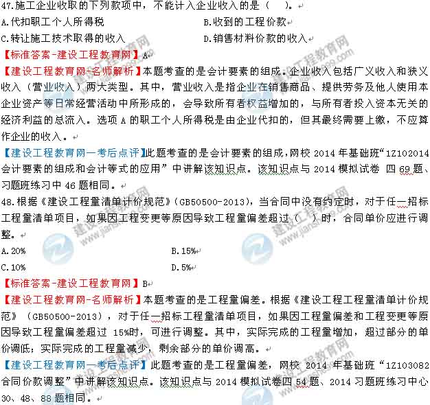 2014一級建造師工程經濟答案及解析由老師整理而成,部分網站未經許可擅自轉載、抄襲,造成內容有所缺失或錯誤,請大家以建設工程教育網發(fā)布為準!