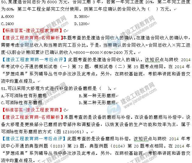 2014一級建造師工程經(jīng)濟(jì)答案及解析由老師整理而成,部分網(wǎng)站未經(jīng)許可擅自轉(zhuǎn)載、抄襲,造成內(nèi)容有所缺失或錯誤,請大家以建設(shè)工程教育網(wǎng)發(fā)布為準(zhǔn)!