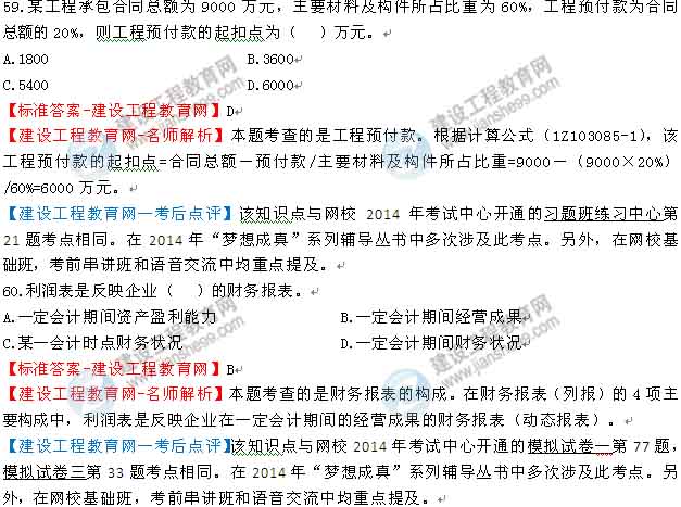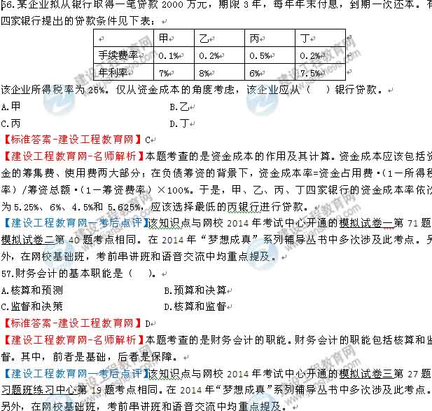 2014一級(jí)建造師《工程經(jīng)濟(jì)》考生試題及答案第56-61題,更多試題及答案在網(wǎng)頁(yè)下方