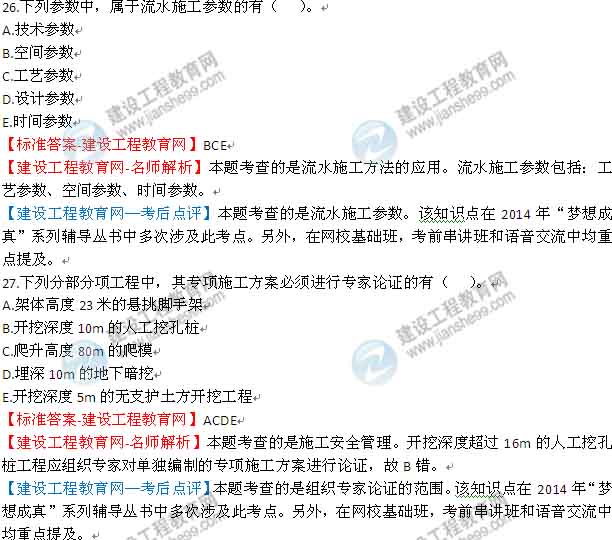 【老師解析】2014年一級建造師建筑管理與實務試題及答案(26-30)