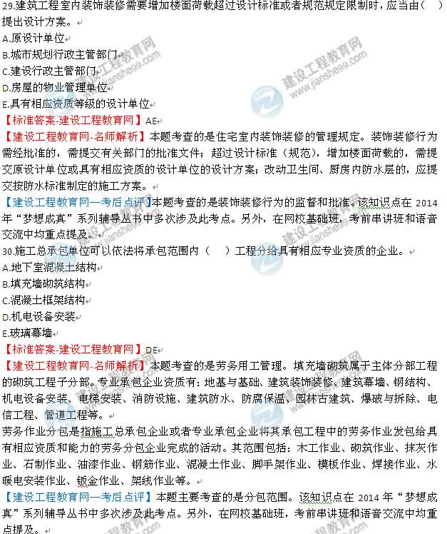 2014一級建造師《建筑實務》考生試題及答案第26-30題,更多試題及答案在網(wǎng)頁下方