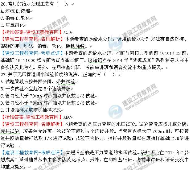2014一級建造師市政工程實務考生試題及答案第26-30題,更多試題及答案在網頁下方