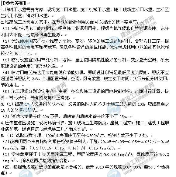 事件二:為了充分體現(xiàn)綠色施工在施工過程中的應(yīng)用,項目部在臨建施工及使用方案中提出了在節(jié)能和能源利用方面的技術(shù)要點。