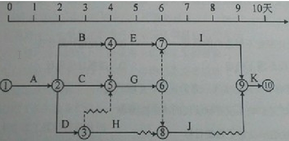 5.下列雙代號時標網絡計劃中,關鍵線路有( )條。