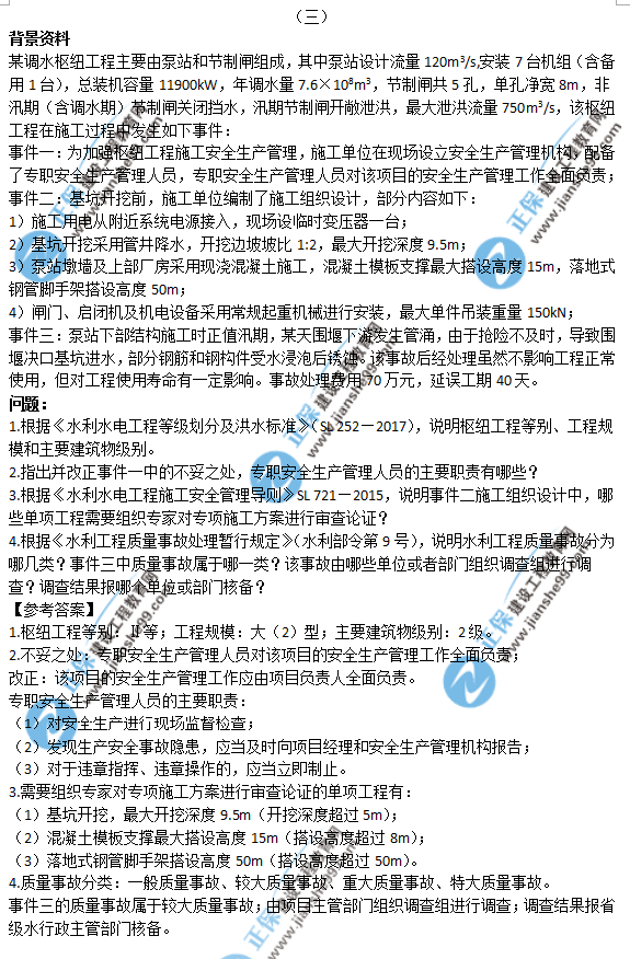 2018年一級(jí)建造師《水利實(shí)務(wù)》試題答案及解析案例三