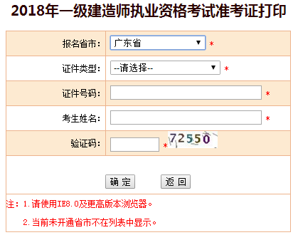 點擊進入2018年廣東一級建造師考試準(zhǔn)考證打印入口》