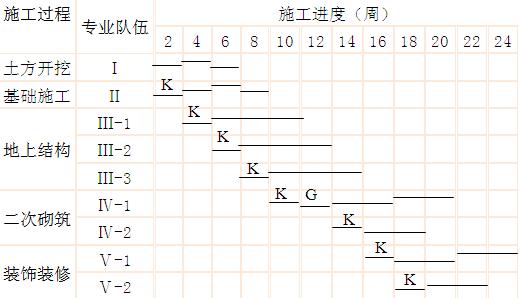 施工過程編號(hào) | 施工過程 | 流水節(jié)拍(周) |