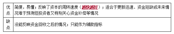 方法:在不考慮資金時(shí)間價(jià)值的條件下,以技術(shù)方案的凈收益回收其總投資(包括建設(shè)投資和流動(dòng)資金)所需要的時(shí)間。