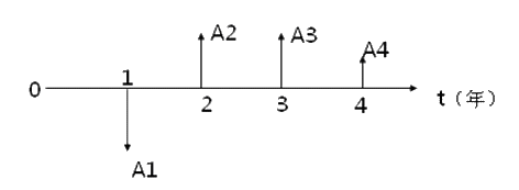 『答案解析』本題考查的是現(xiàn)金流量圖的繪制。A4箭線的長度小于A3,其現(xiàn)金流量應(yīng)小于A3,所以選項(xiàng)D錯(cuò)誤;如果A2和A3的現(xiàn)金流量相等,離現(xiàn)時(shí)點(diǎn)越近其價(jià)值越大,所以A2要大于A3。