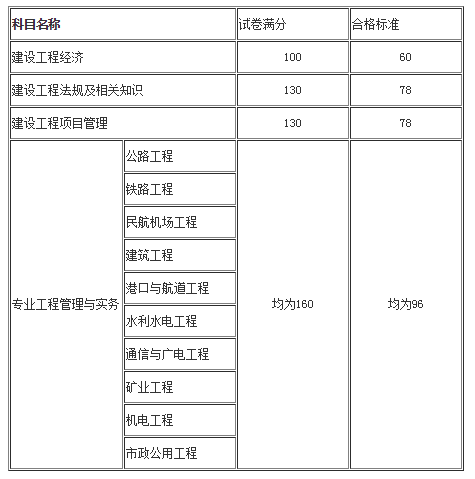 考試成績實行2年為一個周期的滾動管理辦法,參加全部4個科目考試的人員必須在連續(xù)的兩個考試年度內(nèi)通過全部科目;符合免試條件,參加2個科目(建設工程法規(guī)及相關知識和專業(yè)工程管理與實務)考試的人員必須在一個考試年度內(nèi)通過應試科目為合格。