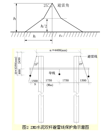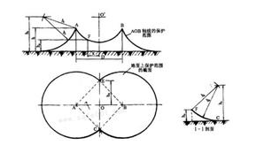 保護(hù)角是通過地線的垂直平面與通過地線和被保護(hù)受雷擊的導(dǎo)線的平面之間的夾角。