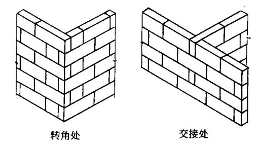 橫墻的磚每隔一層的磚端頭是露出來(lái)的,露出端頭的磚位于與之交叉的縱墻砌塊的中間。
