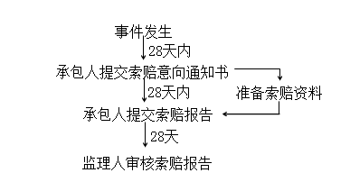 (四)當(dāng)索賠事件持續(xù)進(jìn)行時(shí),承包方應(yīng)當(dāng)階段性向監(jiān)理工程師發(fā)出索賠意向通知,在索賠事件終了后28d內(nèi),向監(jiān)理工程師提出索賠的有關(guān)資料和最終索賠報(bào)告。